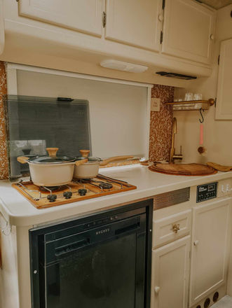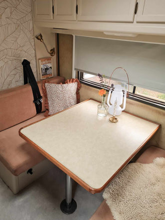 Ik heb een ontwerp mogen bedenken en een advies mogen maken voor de kleuren, materiaalgebruik en welke meubelen ze zouden kunnen toepassen. Deze oude stacaravan heeft een compleet nieuwe binnenkant gekregen. De klant heeft zelf met behulp van een interieurbouwer de caravan aangepakt. Op de buitenmuren na is alles vernieuwd. Wat een toffe plek is dit geworden!